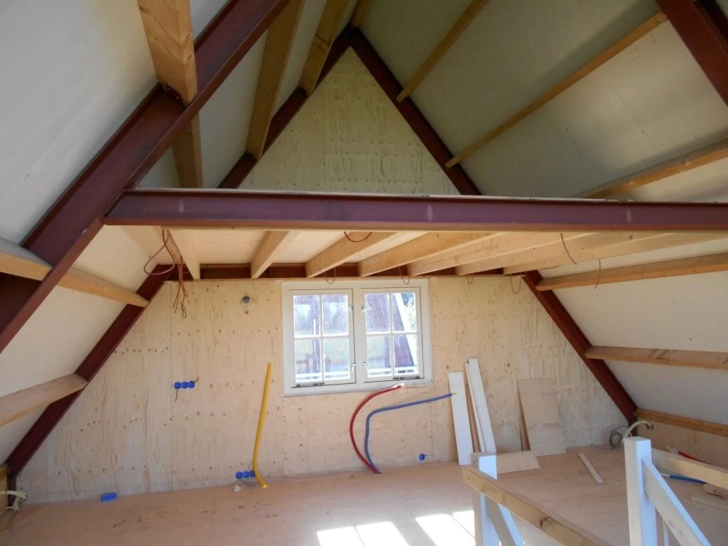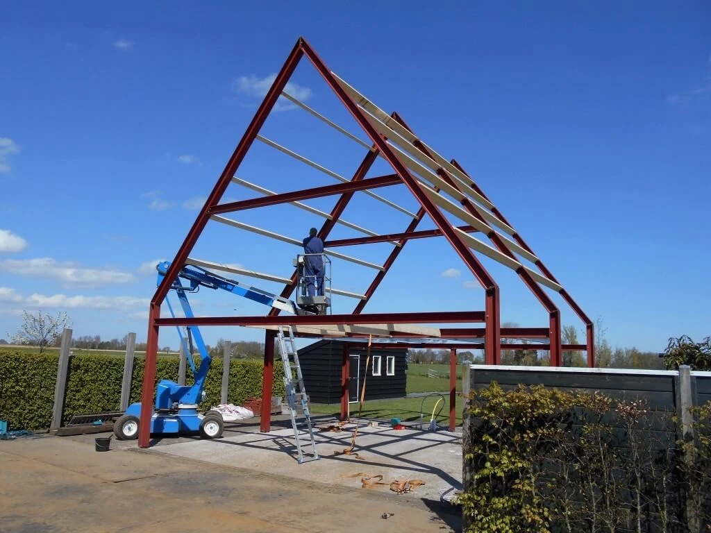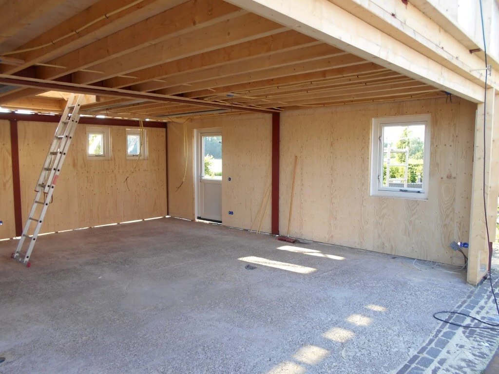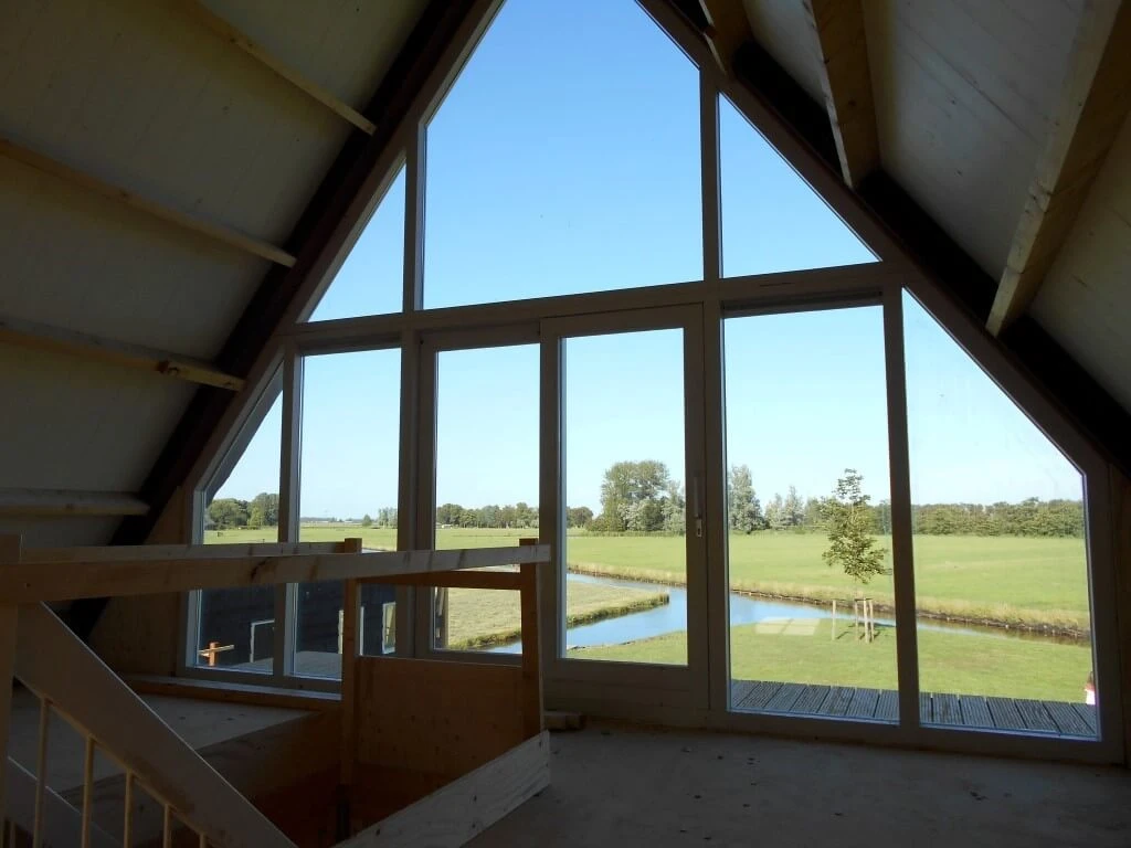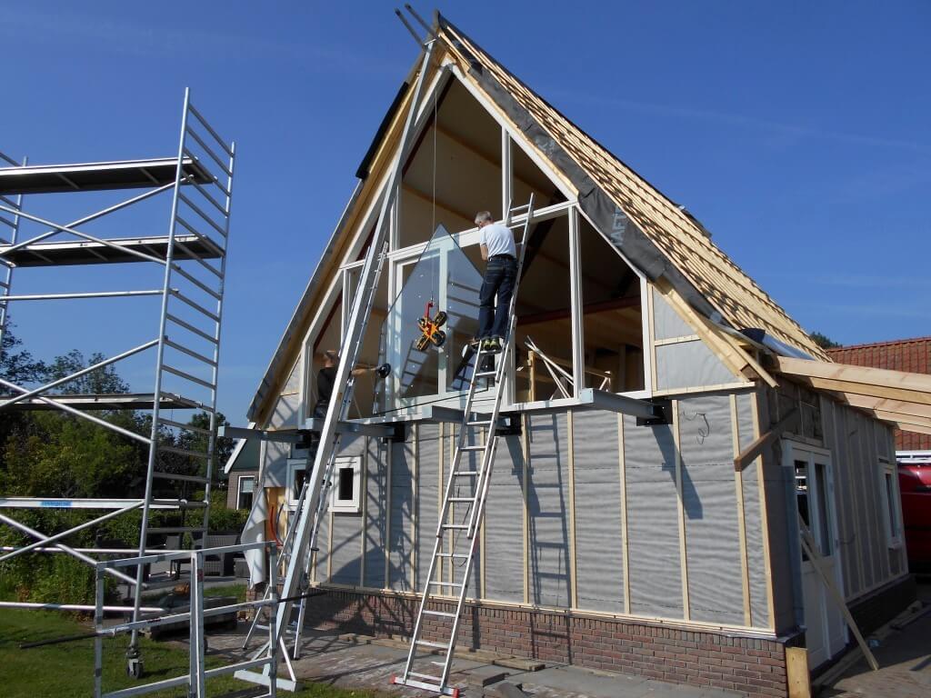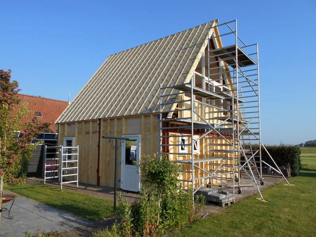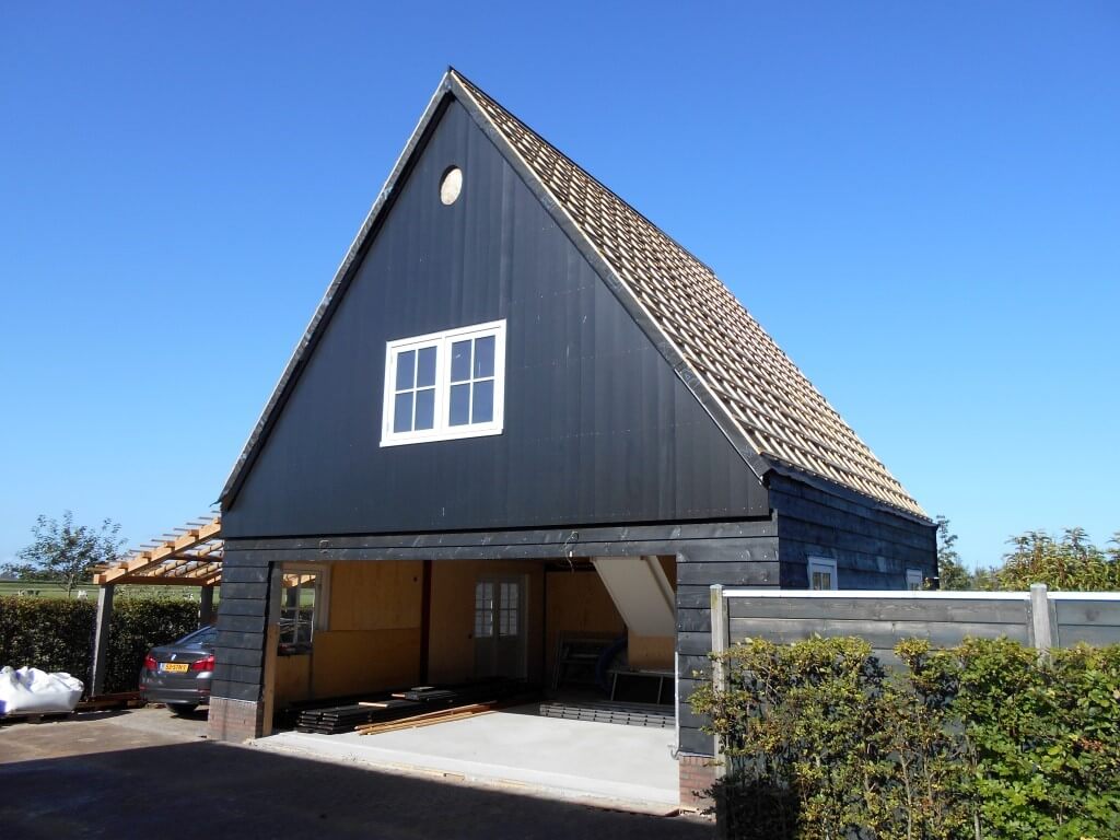 De fundering lag al klaar. Waar eerst een kapberg was gepland is nu dan toch een dubbele garage verrezen. Op de verdieping zou je altijd willen zijn, wat een geweldig uitzicht over de eilandspolder.