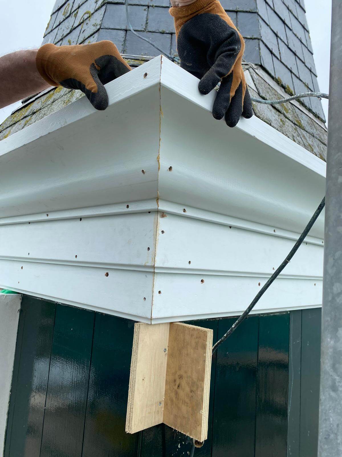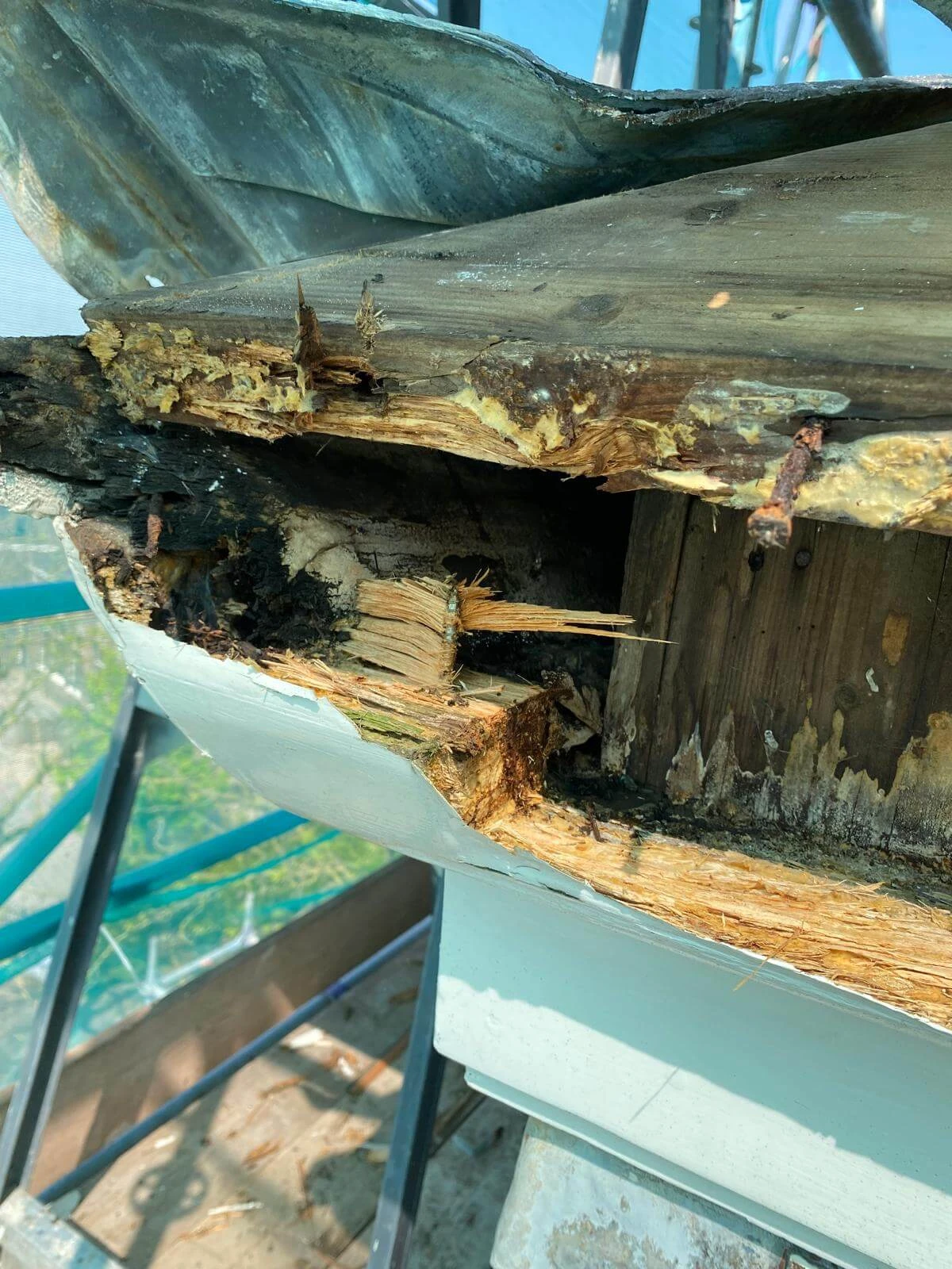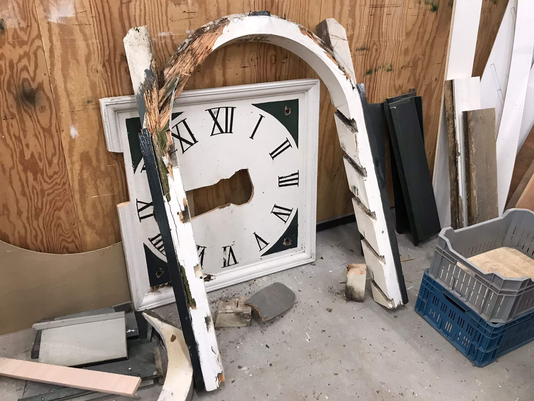 De kroonlijsten om de toren vertonen flinke houtrot en moeten voor het grootste gedeelte geheel worden vervangen. De westelijke wijzerplaat met het achterliggend houtwerk zijn door zwam aangetast. De halfronde kozijnen van de galmgaten worden nagekeken, voor een deel partieel hersteld en voor een deel geheel vervangen. Al met al een behoorlijke klus.