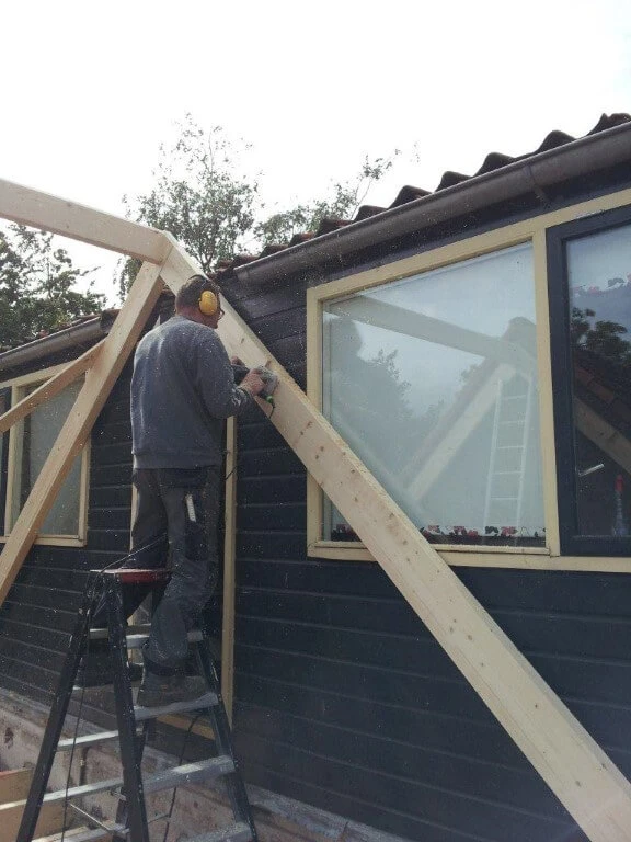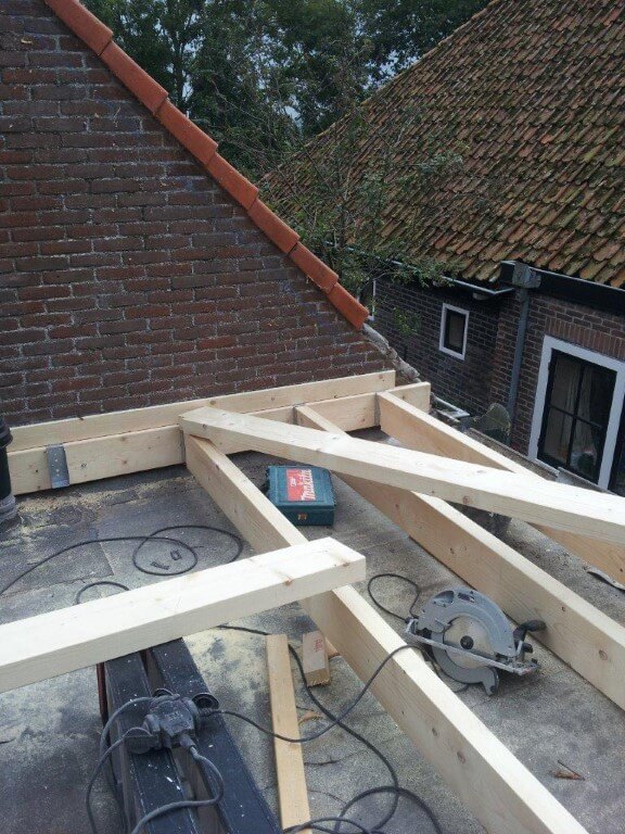 Na eerst wat slaapkameraanpassingen in de bestaande kap te hebben gedaan konden we starten met een luxe dakopbouw.